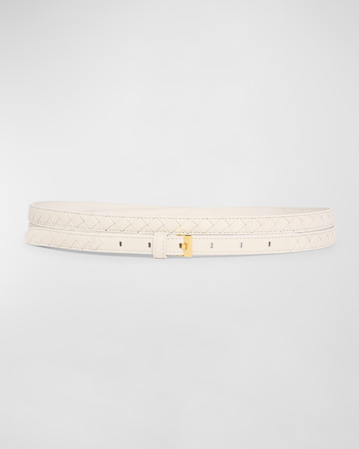 - Bottega Veneta thin double-layered leather belt - Approx. 0.6"W - Square buckle - Adjustable fit - Made in Italy