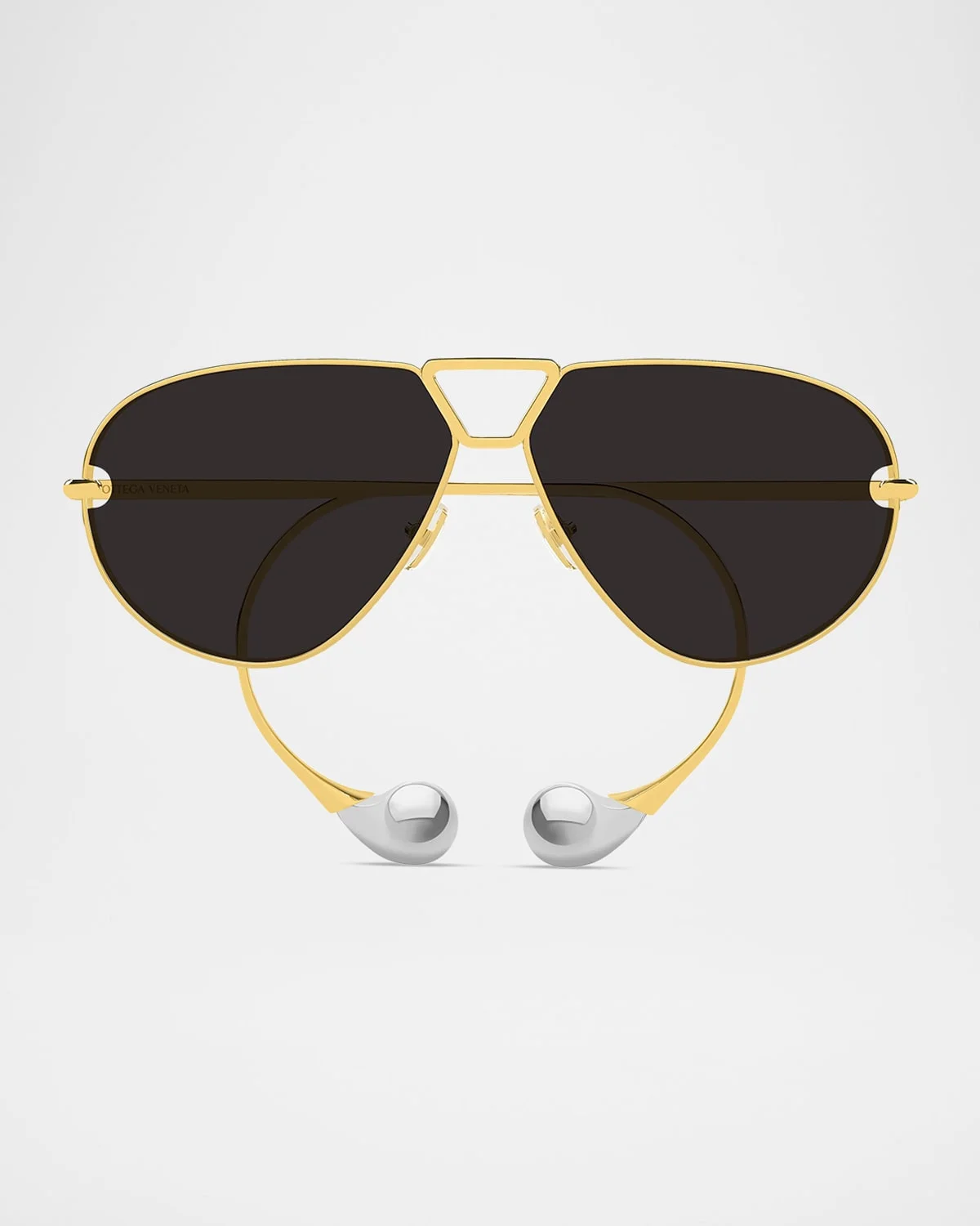 Bottega Veneta "BV1437S" aviator sunglasses crafted from silver and gold-tone metal Eye/bridge/temple (in mm): 64-12-185 Solid-colored lenses Adjustable nose pads Signature drop-shaped temple tips Metal 100% UVA/UVB protection Made in Italy