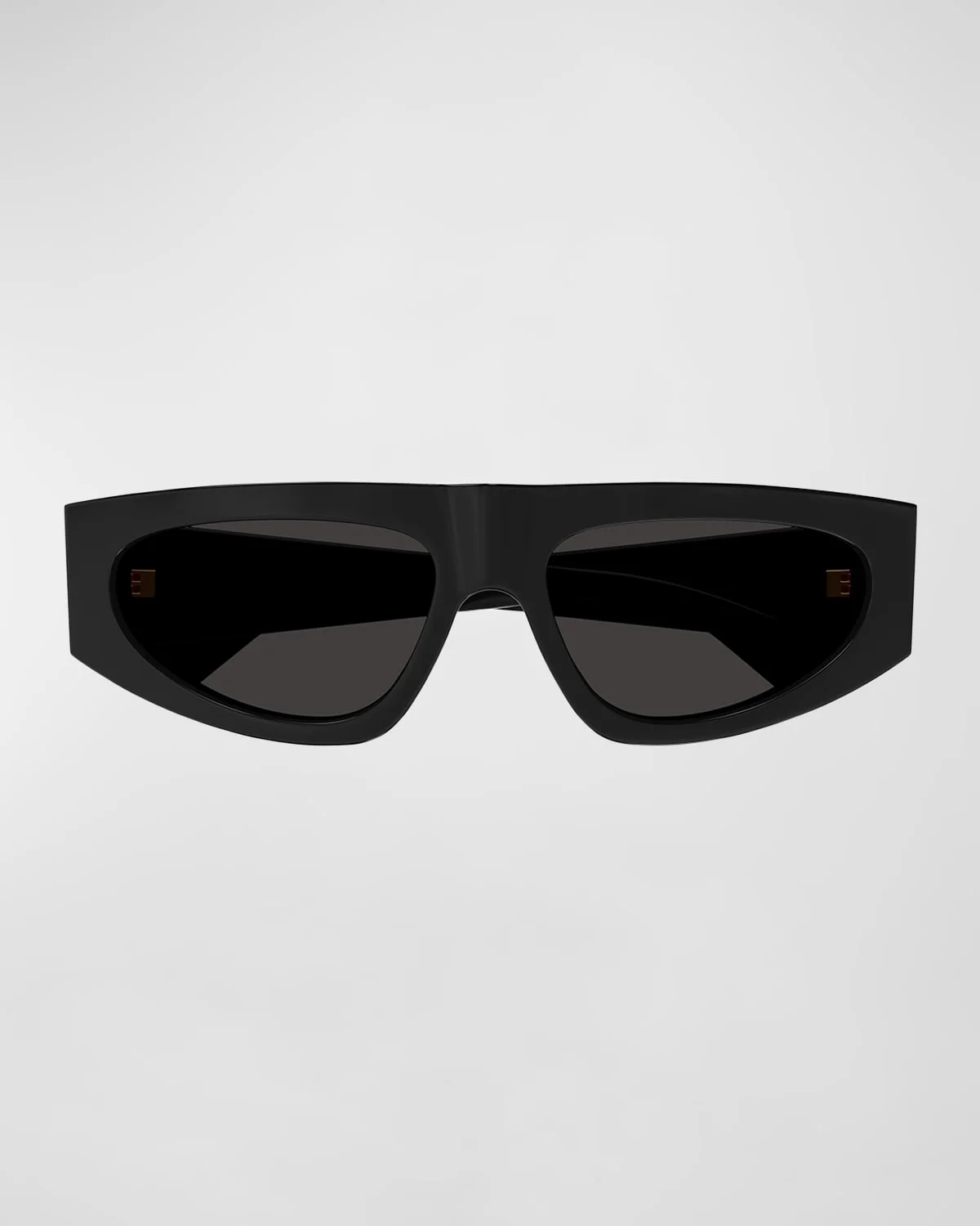 Bottega Veneta "BV1277S" flattop rectangle sunglasses in acetate Lens/bridge/temple (in mm): 5717140 Solid lenses Saddle nose bridge Engraved logo on temples Wide, tapered arms 100% UVA/UVB protection Made in Italy