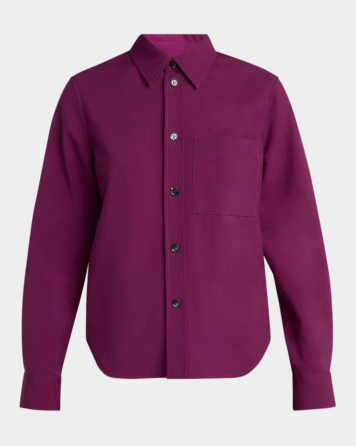 - Bottega Veneta shirt in fine viscose silk twill - Point collar; button front - Long sleeves - Buttoned barrel cuffs - Chest patch pocket - Yoked back; box pleat - Loose fit - Hip length - Shirttail hem - Viscose/silk - Made in Italy