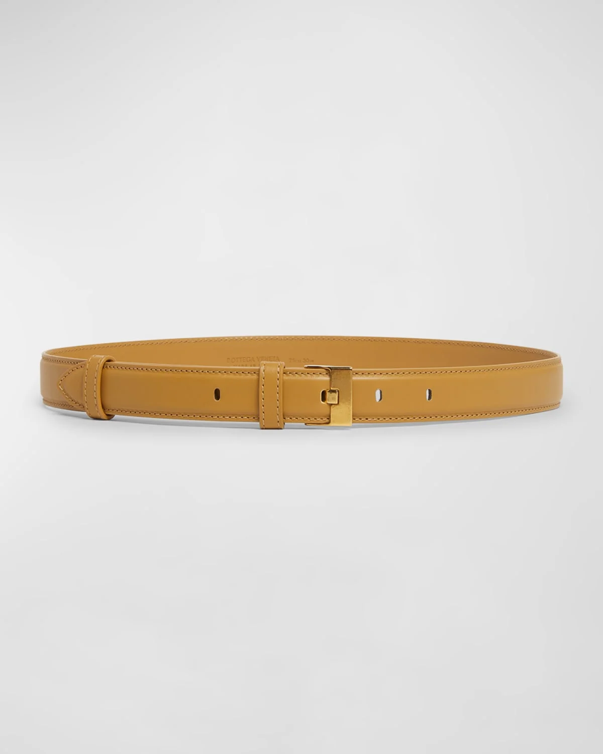 Bottega Veneta belt in natural calf leather and brass Adjustable fit Frame buckle Tapered end Tonal stitching Made in Italy