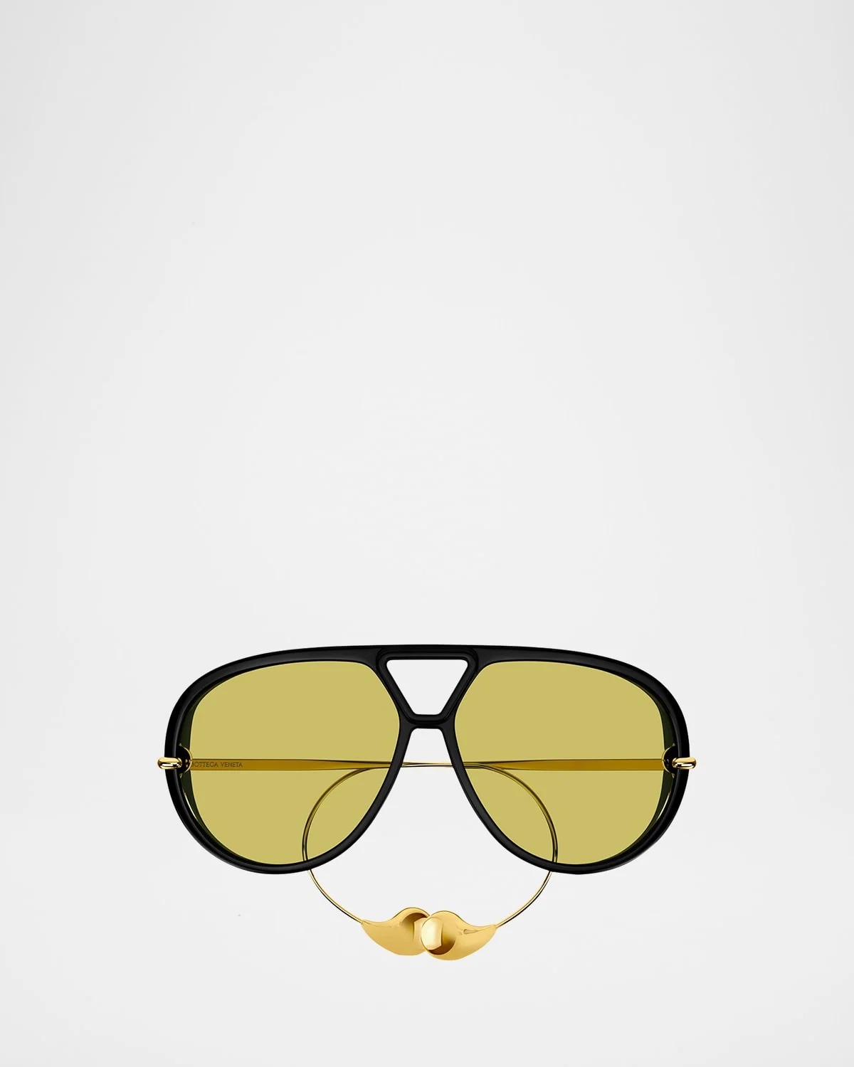 Bottega Veneta "BV1273S" aviator sunglasses in acetate and metal alloy Lens/bridge/temple (in mm): 6312180 Double nose bridge Solid lenses Engraved logo on temples Thin, tapered arms Ball accent on earpieces 100% UVA/UVB protection Made in Japan