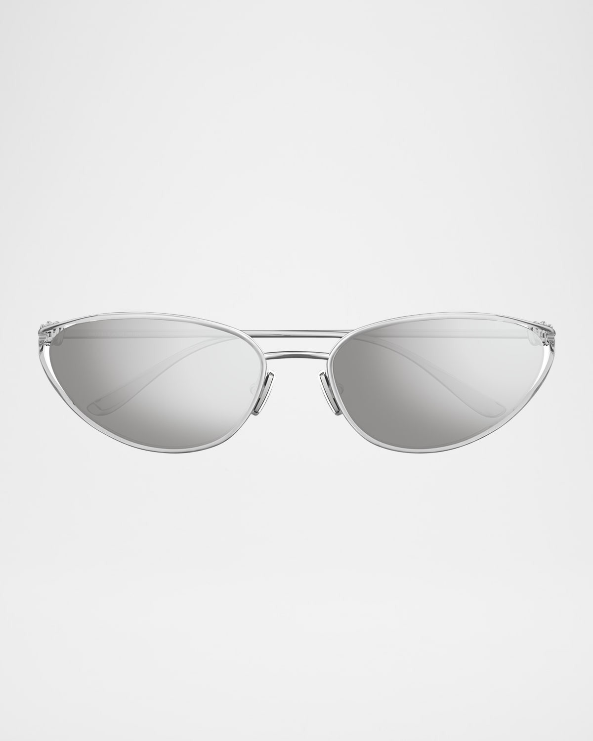 - Bottega Veneta "BV1330S" cat-eye sunglasses in metal - Eye/bridge/temple (in mm): 57-19-130 - Solid lenses - Adjustable nose pads - Signature Knot on temples - Thin, tapered arms - 100% UVA/UVB protection - Made in Japan - Proposition 65 warning for California residents