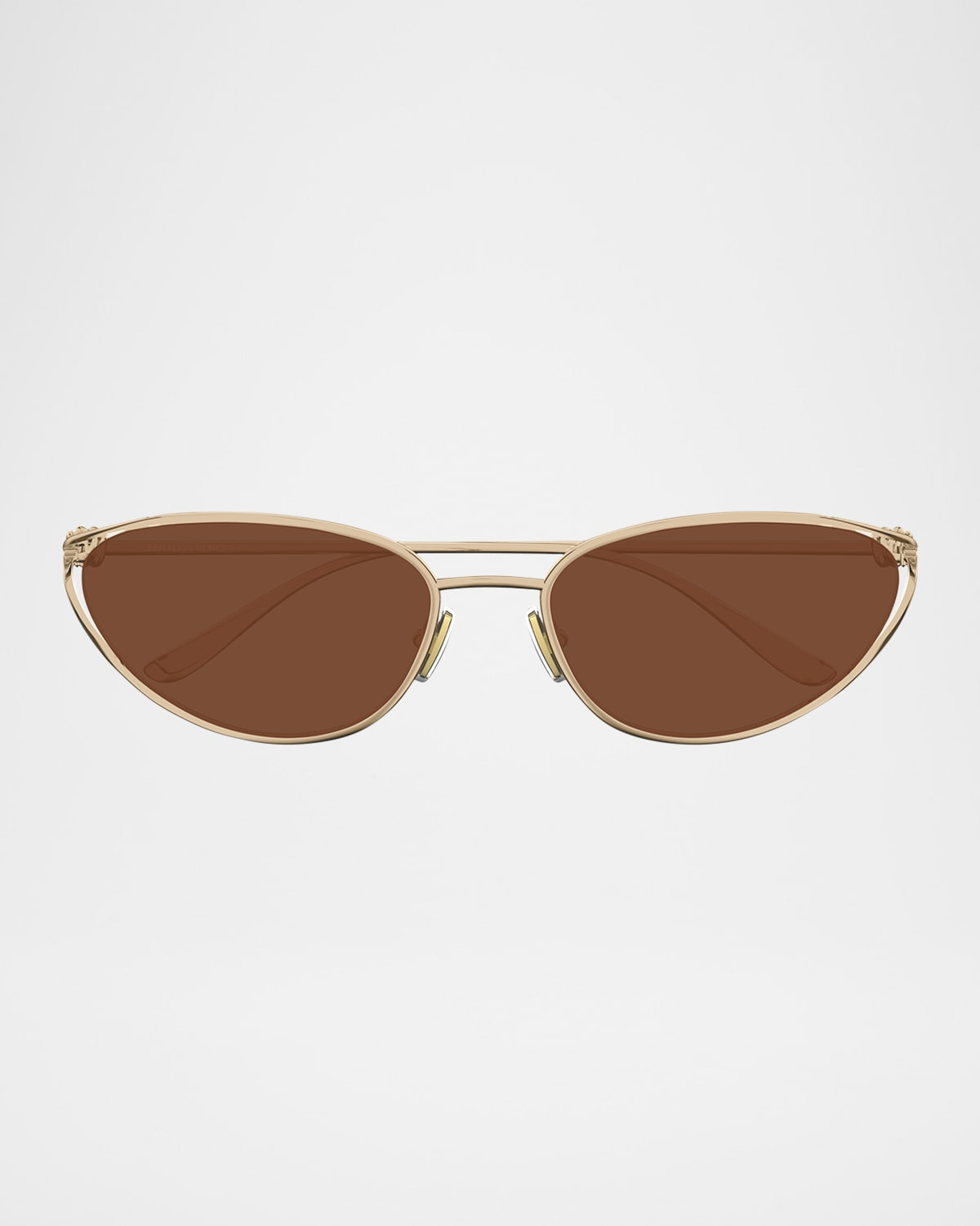 - Bottega Veneta "BV1330S" cat-eye sunglasses in metal - Eye/bridge/temple (in mm): 57-19-130 - Solid lenses - Adjustable nose pads - Signature Knot on temples - Thin, tapered arms - 100% UVA/UVB protection - Made in Japan - Proposition 65 warning for California residents
