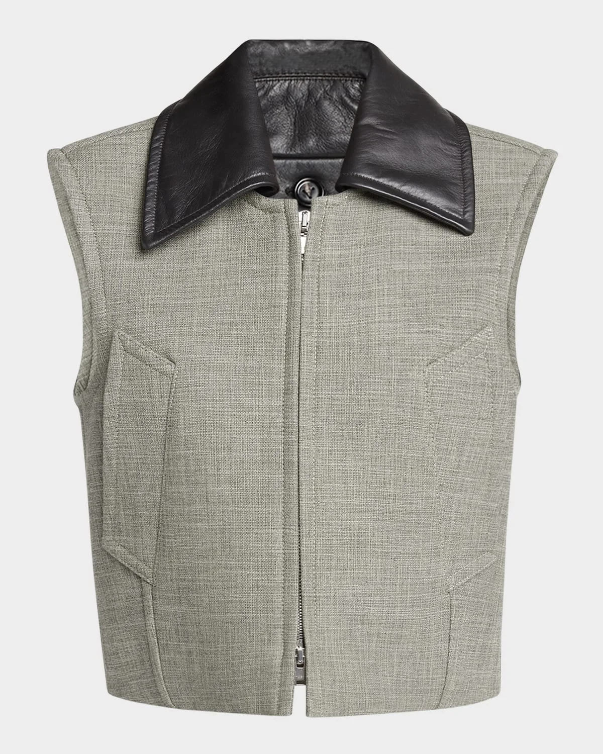 Leather-Collar Structured Melange Vest