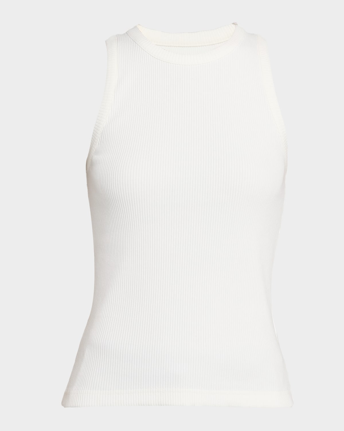 - Bottega Veneta rib-knit tank top with embroidered logo patch at the back - Crew neckline - Sleeveless - Racerback - Classic fit - Hem sits at the hip - Pullover style - Cotton - Made in Italy