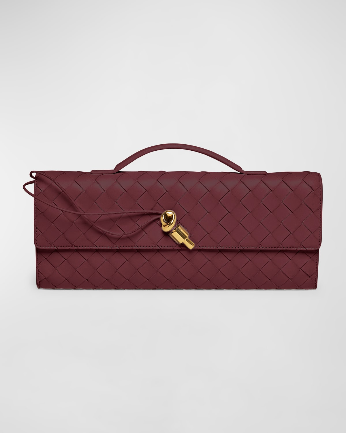 - Bottega Veneta "Andiamo" wallet in - intrecciato - leather - Top handle - Can be worn as a top handle or wallet - Flap top with knot lock - Approx. 5.1"H x 12.2"W x 1.2"D - Made in Italy