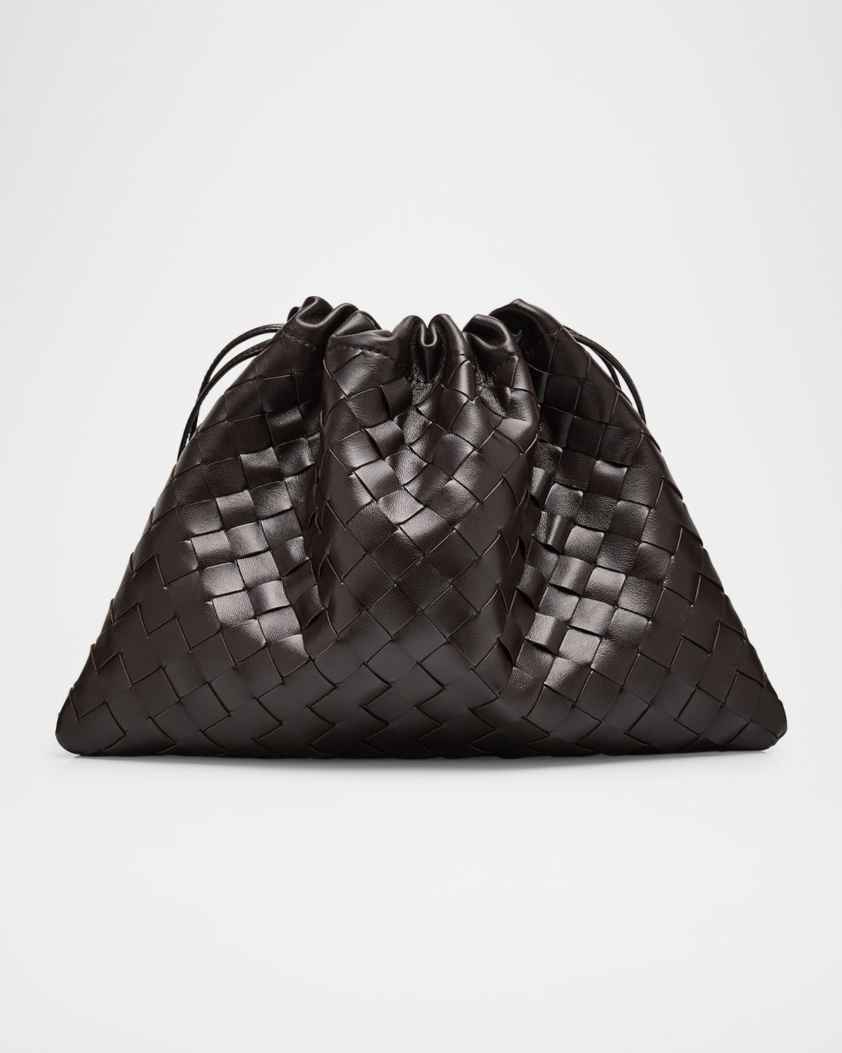 - Bottega Veneta pouch bag in intrecciato leather - Drawstring closure with loop attachments for shoulder carry - Strap, approx. 13.8" drop - Approx. 9"H x 12.6"W x 0.4"D - Made in Italy
