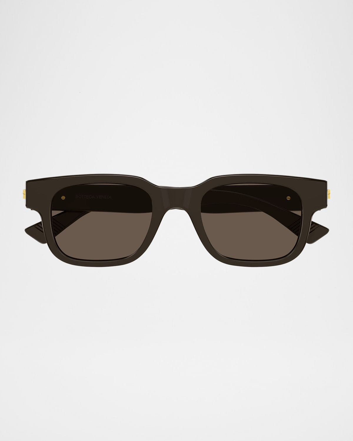 The "Bv1411s003" rectangular sunglasses by Bottega Veneta showcase the signature goldfinished ribbon on the temples Lens/bridge/temple (in mm): 5318140 Solidcolor lenses Saddle nose bridge Plastic 100% UVA/UVB protection Made in Italy
