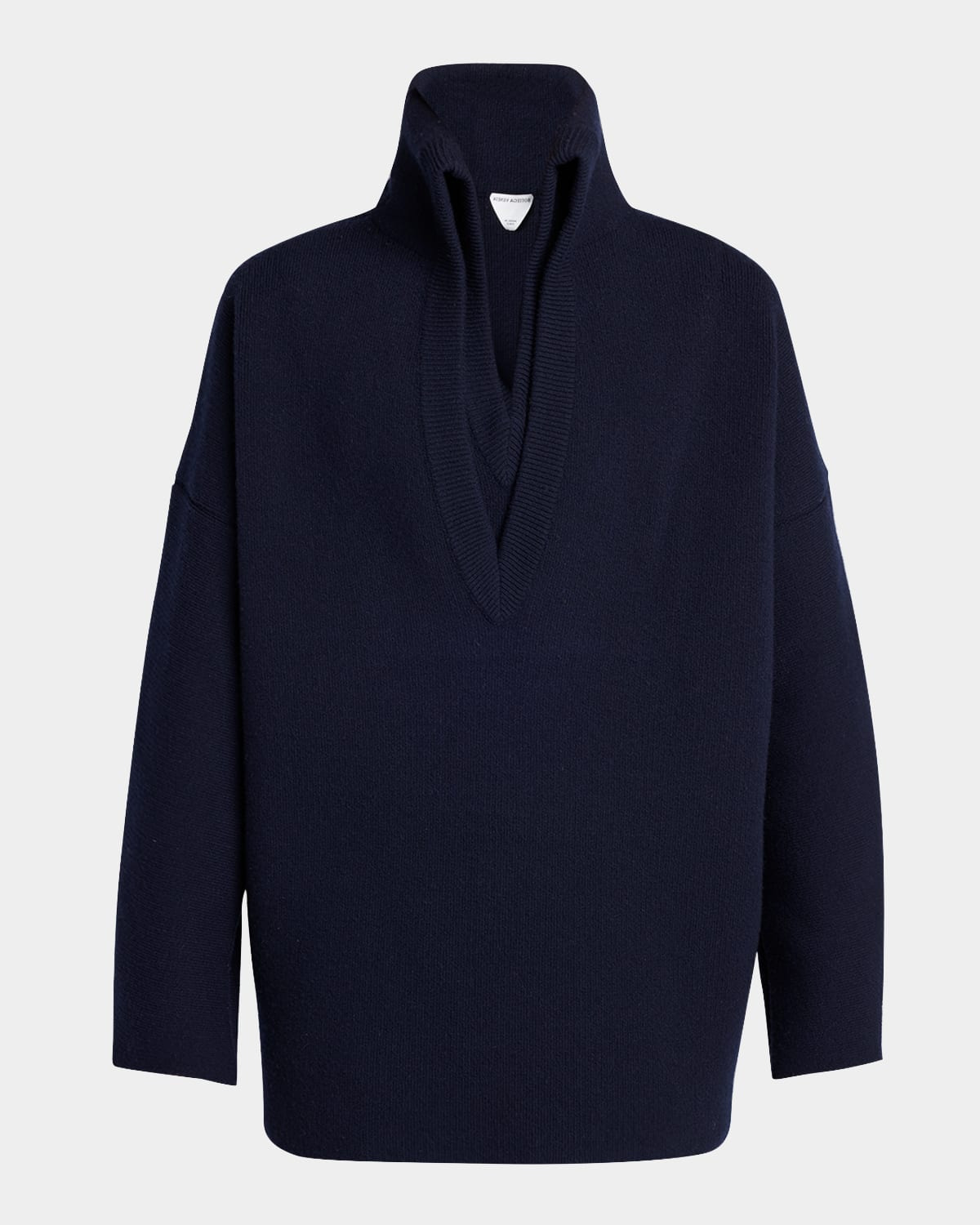 - Bottega Veneta sweater in compact knit - Double collar and ribbed V neckline - Oversized fit - Long sleeves - Pullover style - Wool - Made in Italy - Model is 6'1"/185cm.