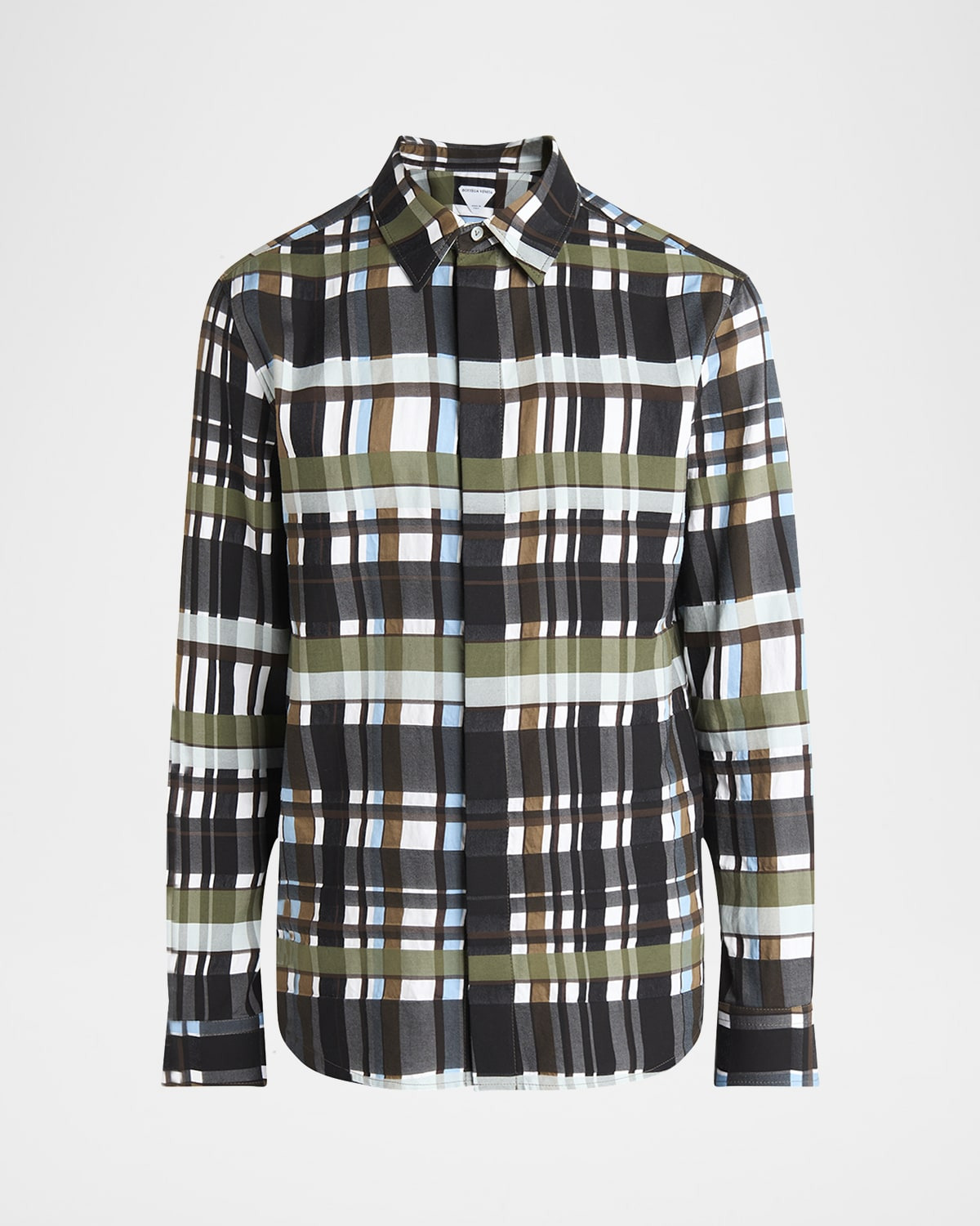 - Bottega Veneta casual button-down shirt in cotton with a jumbo 3D-effect plaid print - Point collar - Concealed button placket - Long sleeves - Single-button cuffs - Back yoke - Shirttail hem - Cotton - Made in Italy