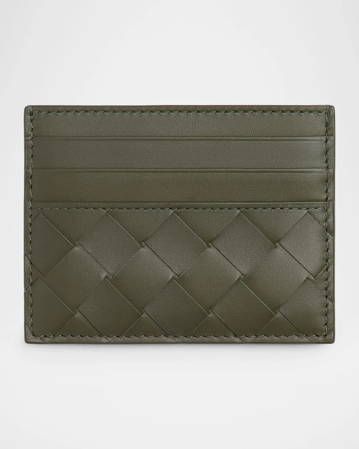 Bottega Veneta slim card case in signature woven intrecciato calf leather Approx. 4"L x 0.2"W x 3"H Six external card slots One central compartment Tonal topstitching Made in Italy