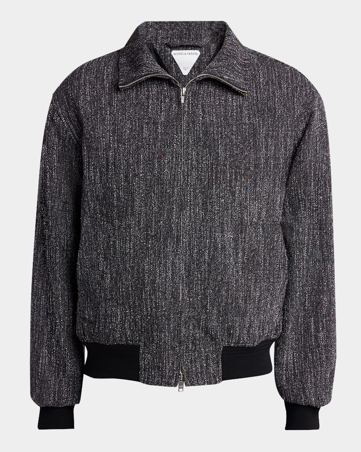 - Bottega Veneta melange jacket with multicolor flecks throughout - Zip-up neckline - Dual zip closure - Side slip pockets - Long sleeves - Ribbed cuffs and waistband - Wool/nylon/polyamide/elastane - Lining: Cotton - Made in Italy