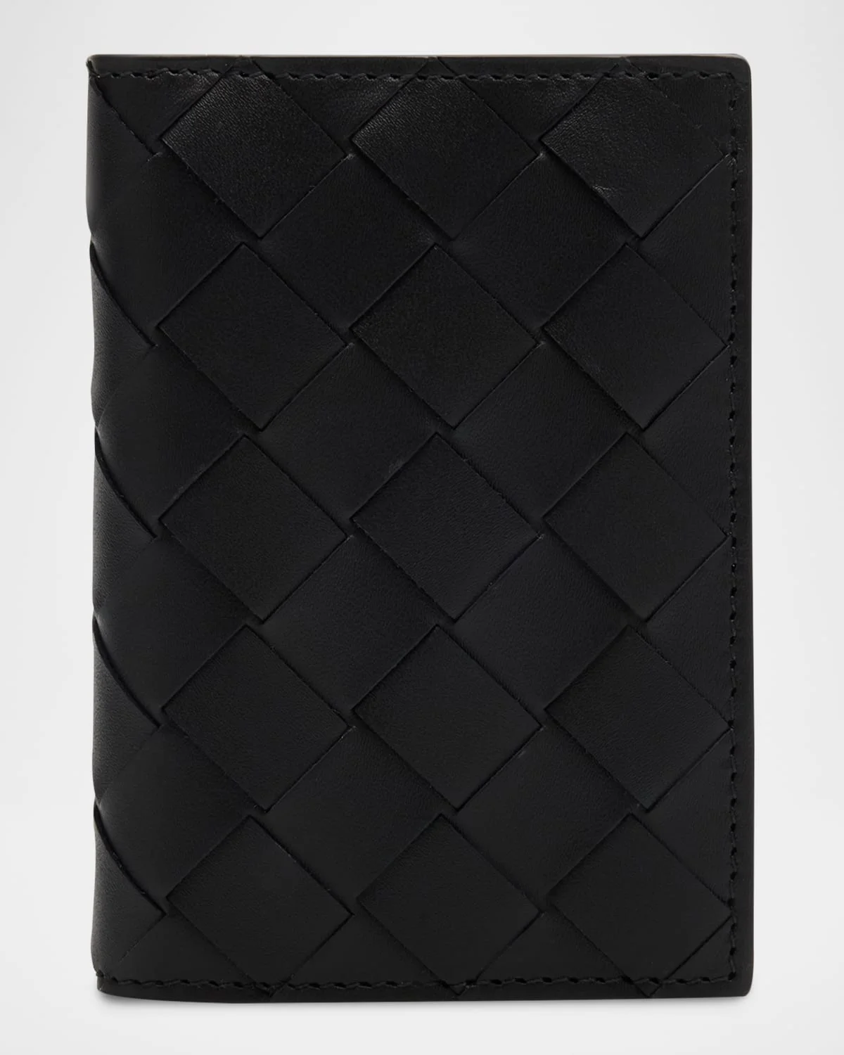 Bottega Veneta card case in woven calfskin. Six card slots; two slip pockets. Made in Italy.