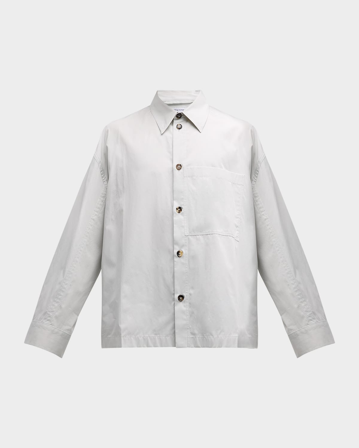 - Bottega Veneta shirt crafted from technical cotton and silk - Spread collar - Button closure - Chest patch pocket - Long sleeves with buttoned cuffs - Oversized fit - Yoked back shoulders - Made in Italy - Model is 6'1"/185cm.
