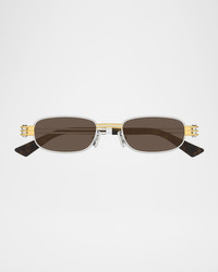 Bottega Veneta "BV1381S" rectangle sunglasses in metal Eye/bridge/temple (in mm): 5020145 Solid lenses Adjustable nose pads Logo engraving at temples Thin, tapered arms 100% UVA/UVB protection Made in Japan