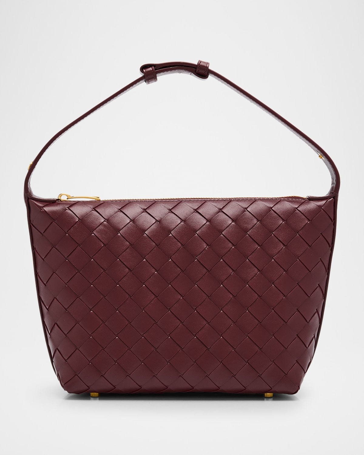 - Bottega Veneta "Wallace" mini shoulder bag in - intrecciato - leather - Adjustable shoulder strap - Zip top closure - Feet protect bottom of bag - Approx. 3.7"H x 9.1"W x 1.2"D - Made in Italy