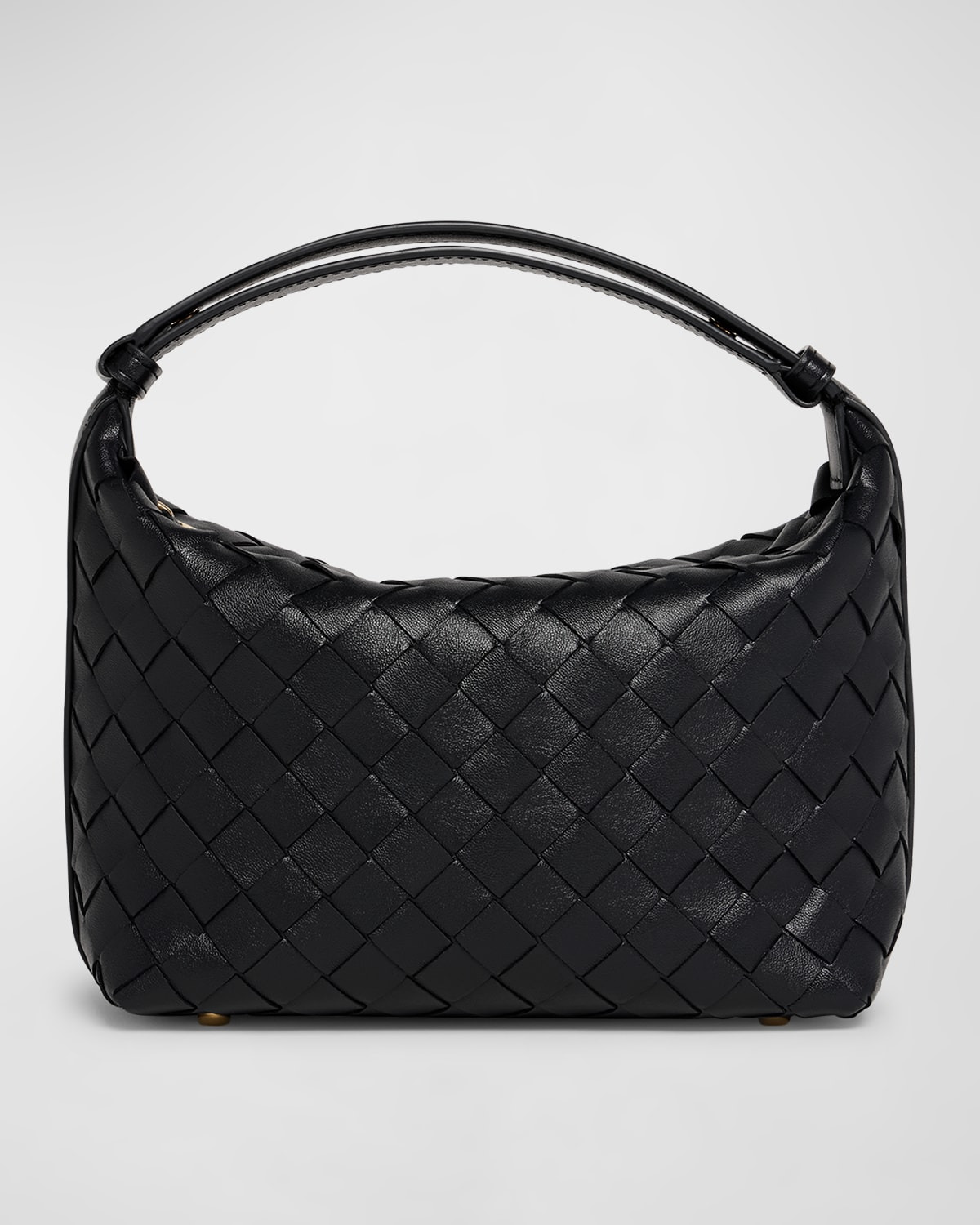 - Bottega Veneta "Wallace" mini shoulder bag in - intrecciato - leather - Adjustable shoulder strap - Zip top closure - Feet protect bottom of bag - Approx. 3.7"H x 9.1"W x 1.2"D - Made in Italy