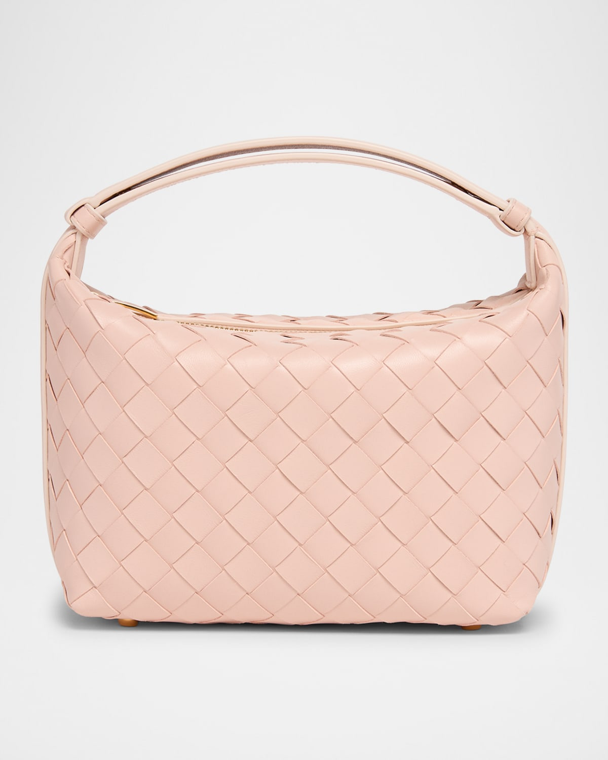 - Bottega Veneta "Wallace" mini shoulder bag in - intrecciato - leather - Adjustable shoulder strap - Zip top closure - Feet protect bottom of bag - Approx. 3.7"H x 9.1"W x 1.2"D - Made in Italy
