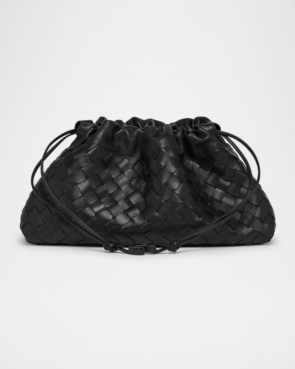 - Bottega Veneta shoulder bag in - intrecciato - leather - Detachable chain shoulder strap - Can be worn as a clutch or shoulder bag - Drawstring closure - Approx. 7.5"H x 13"W x 3.1"D - Made in Italy