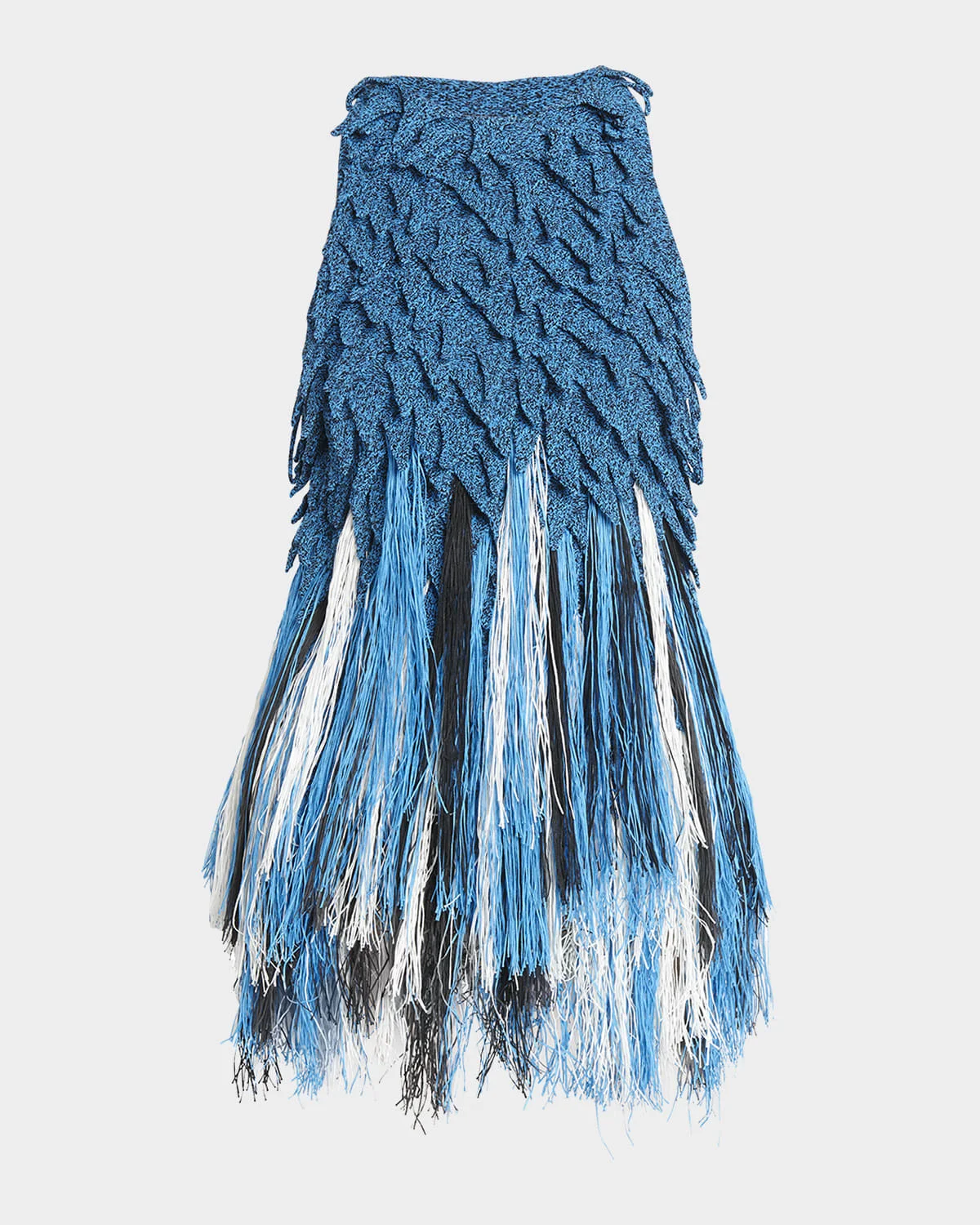 Bottega Veneta textured knit top featuring fringed hem Crew neckline Sleeveless Empire waist Relaxed fit Invisible back zip Viscose/rayon/cellulose acetate Made in Italy