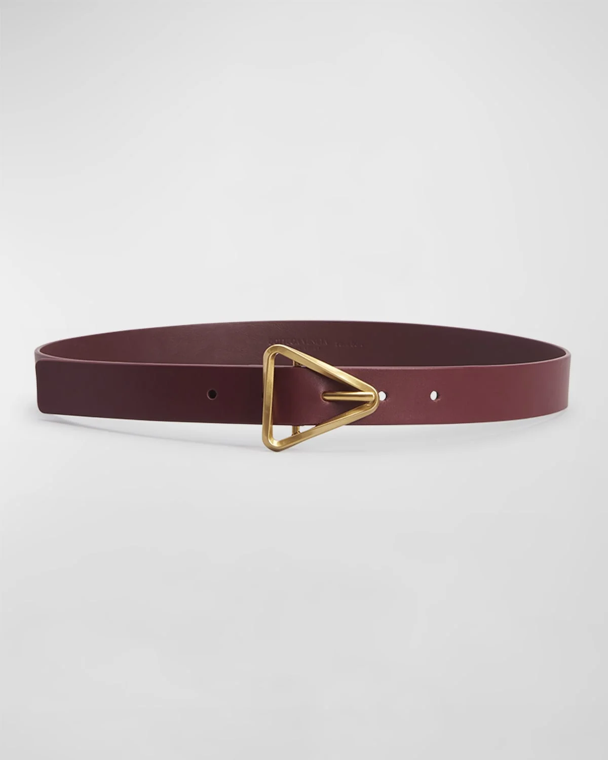 - Bottega Veneta calf leather belt - Approx. 37.4"L x 1"W - Length based on size 80 - Signature twisted triangle buckle - Calf leather/metal - Wipe clean - Made in Italy