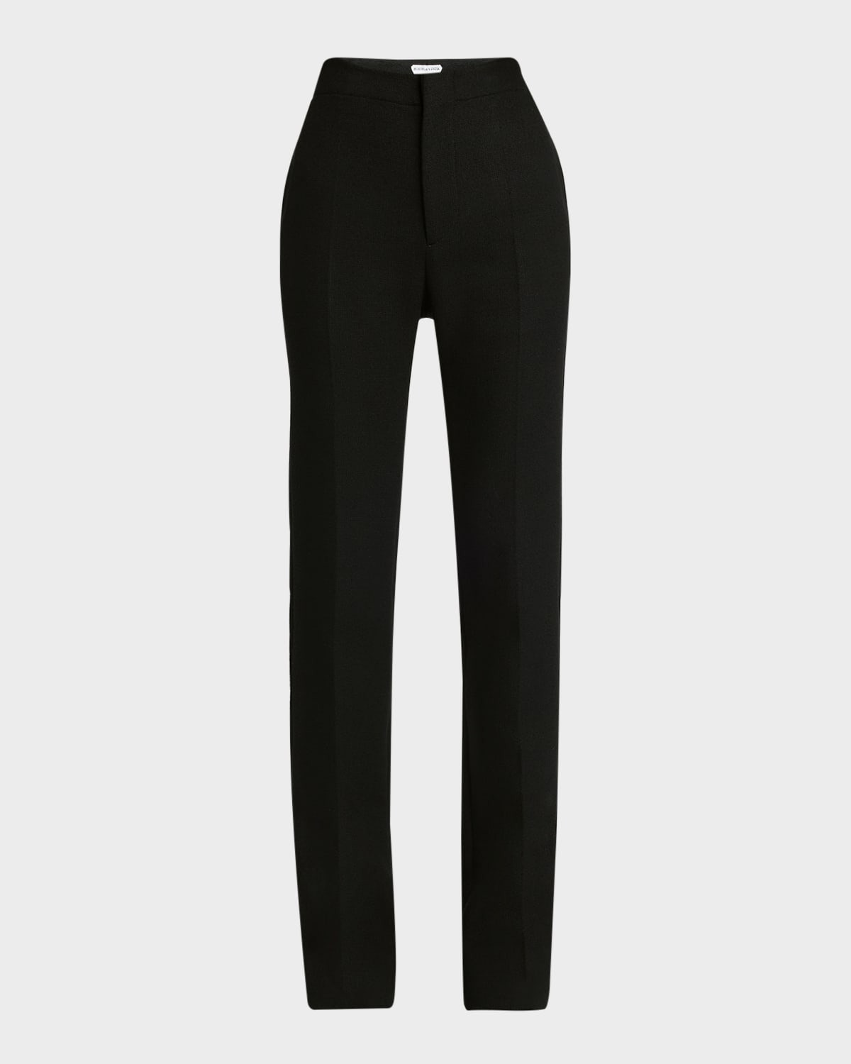 Bottega Veneta wool twill trousers High rise Side seam and back welt pocket Full length Slim fit Flared legs Hidden hook/zip fly Wool/cashmere/viscose Made in Italy