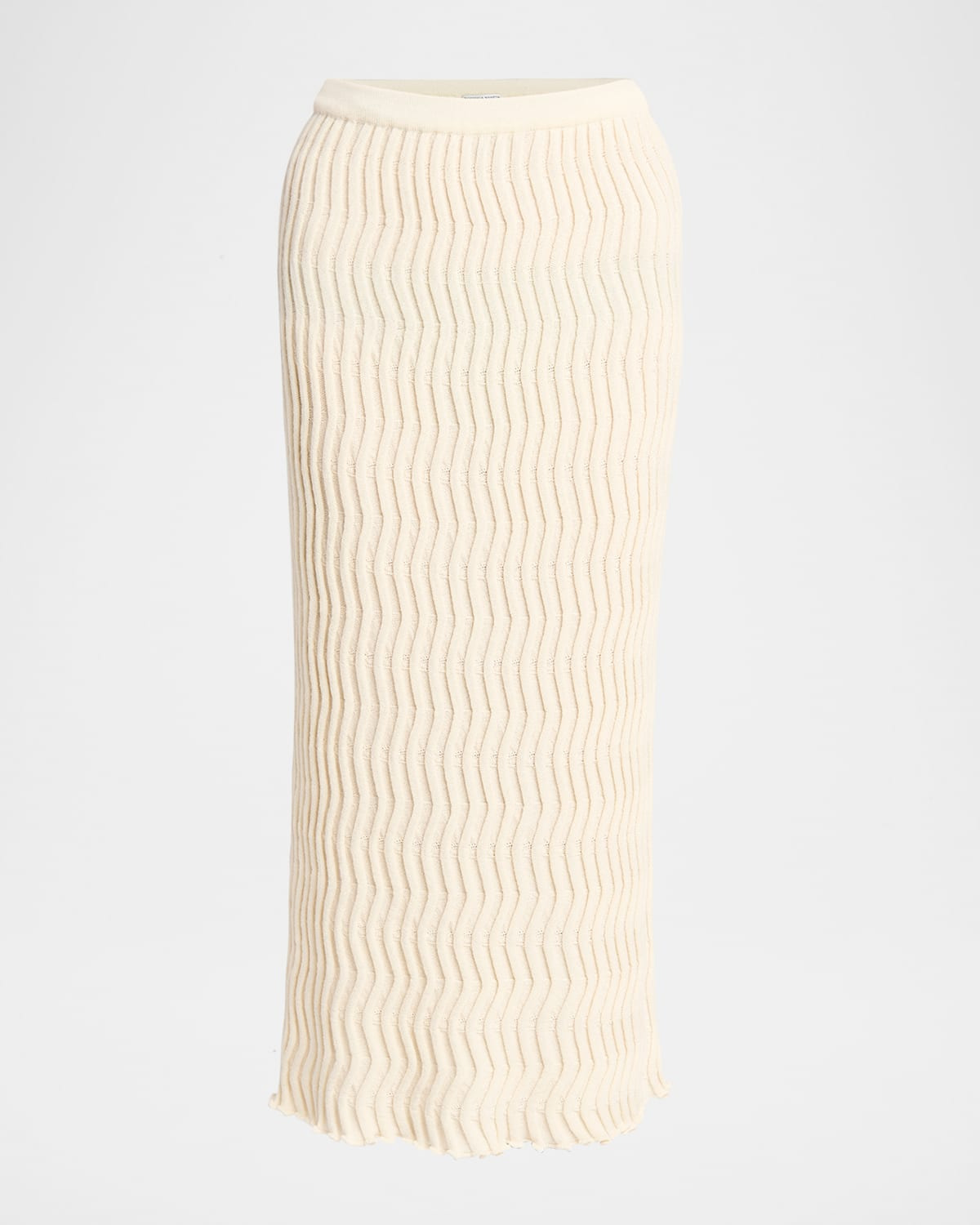 Bottega Veneta skirt in a zigzag knit High waist Hem falls below the knee Skirt falls straight from hip to hem Pullon style Cotton/viscose Made in Italy