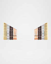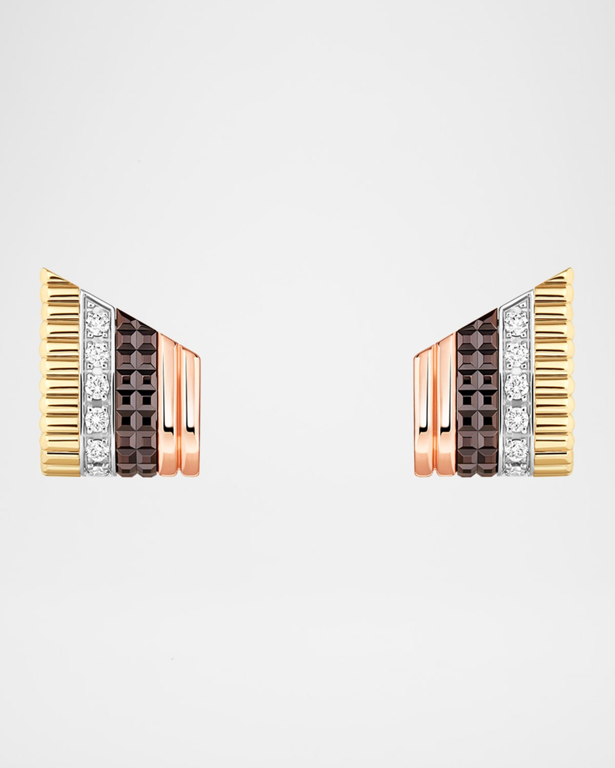 Quatre Classique 18K Tricolor Gold Stud Earrings with Diamonds and Brown PVD