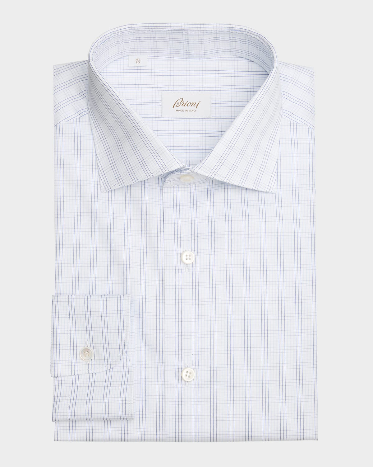 - Brioni dress shirt featuring a graph check print - Point collar - Button placket - Long sleeves - Round barrel cuffs - Shirttail hem - Modern fit - Cotton - Dry clean - Made in Italy