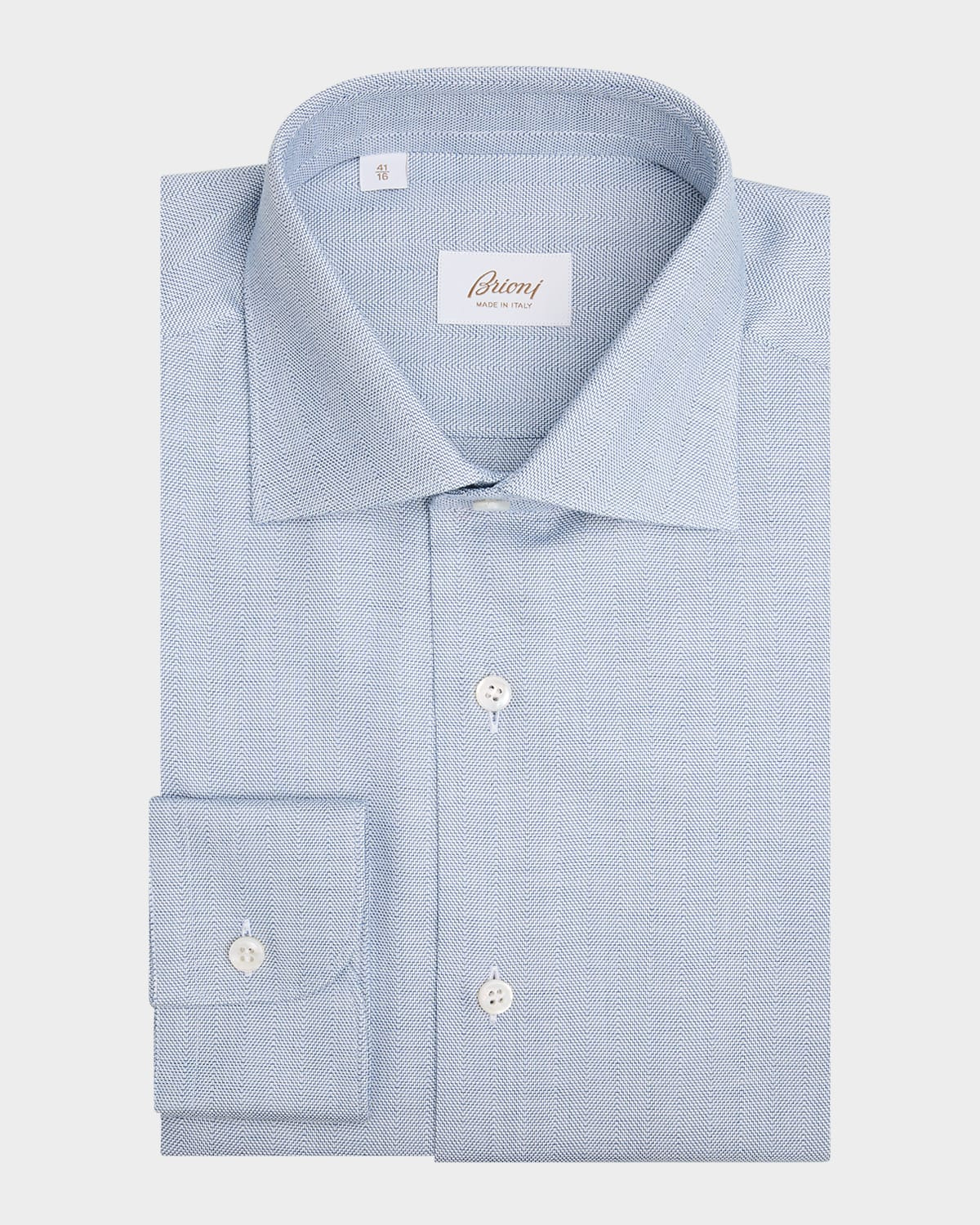 - Brioni dress shirt in breathable cotton with a textured herringbone pattern - Spread collar - Button placket - Long sleeves - Round barrel cuffs - Shirttail hem - Classic fit - Cotton - Unlined - Dry clean - Made in Italy