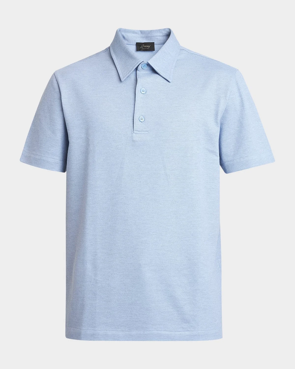 - Brioni solid polo shirt in cotton jersey - Spread collar - Three-button placket - Short sleeves - Pullover style - Cotton - Dry clean - Made in Italy - Model is 6'1"/185cm.