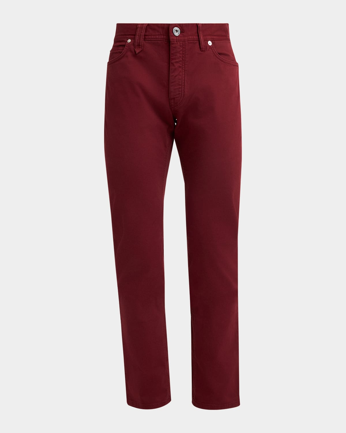 - Brioni pants in solid cotton-stretch fabric - Regular rise - Flat front - Five-pocket style - Straight legs - Full length - Classic fit through the hips and thighs - Button-zip front; belt loops - Cotton/elastane - Dry clean - Made in Italy - Model is 6'1"/185cm.