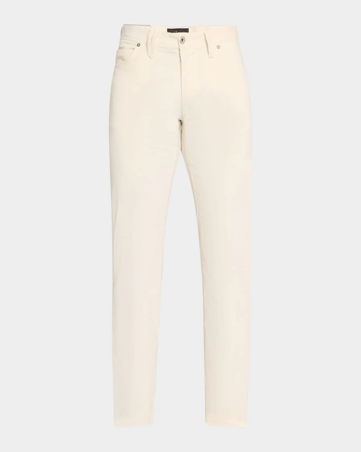 - Brioni "Pinwale" pants in solid cotton-stretch fabric - Regular rise - Flat front - Five-pocket style - Straight legs - Full length - Button-zip front; belt loops - Cotton/elastane - Dry clean - Made in Italy - Model is 6'1"/185cm.