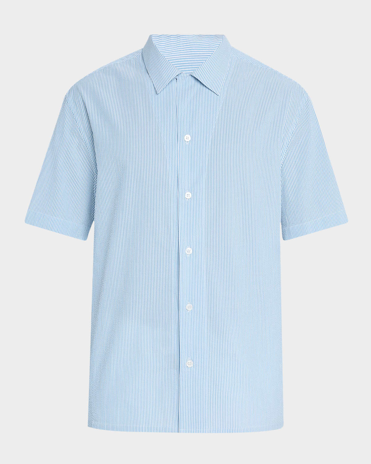 Men's Stripe Cotton Seersucker Short-Sleeve Shirt