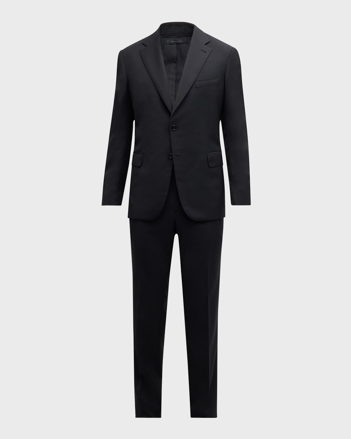 - Brioni suit in tonal stripes - Wool/elastane - Dry clean - Made in Italy - Jacket: - Notched lapels - Two-button closure - Chest welt pocket - Side flap pockets - Unfinished sleeves - Double-vented back - Trousers: - Regular rise - Flat front - Side slip pockets - Back welt pockets - Full length with creasing - Straight legs - Unfinished hem to be tailored to desired length - Model is 6'1"/185cm.