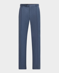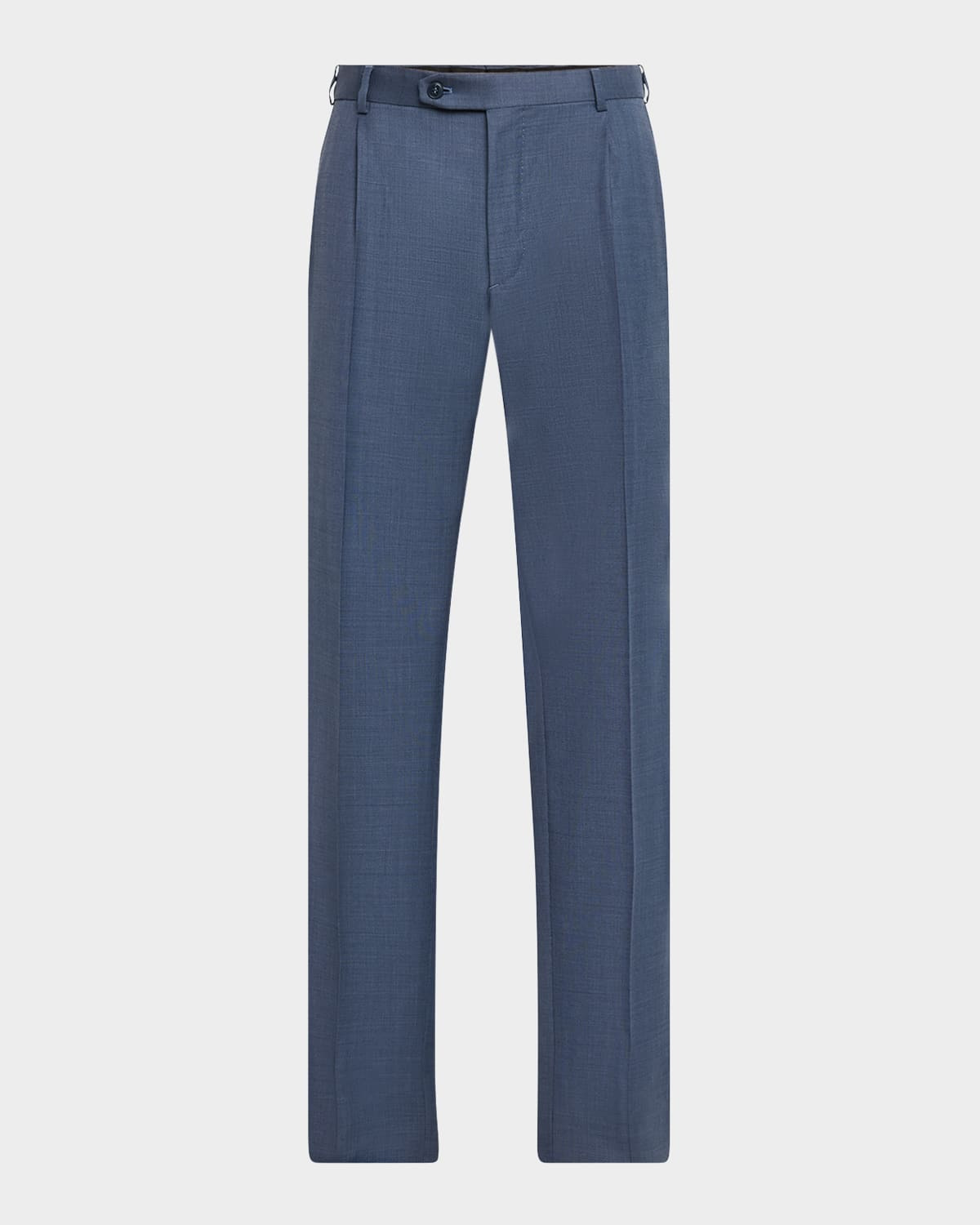 - Brioni trousers in solid wool sharkskin - Regular rise - Extended button-zip closure - Pleated front - Side slip pockets - Buttoned back pockets - Full length - Straight legs - Dry clean - Made in Italy