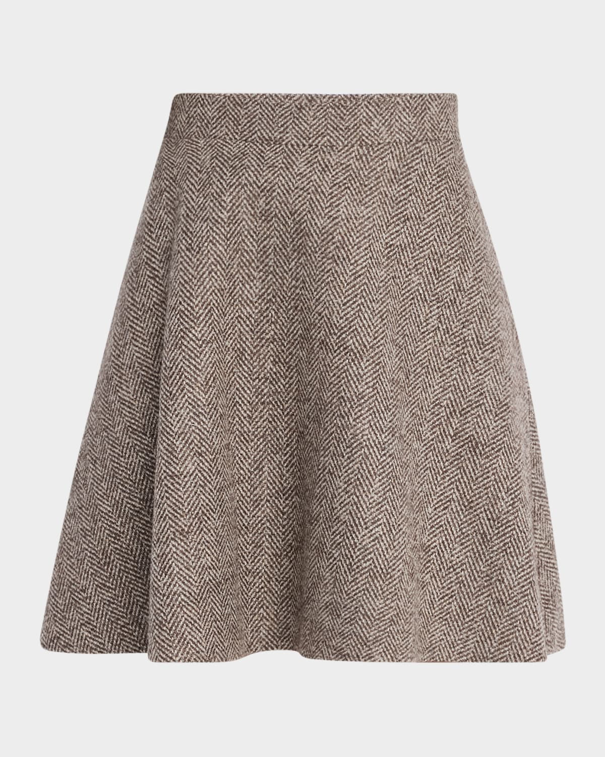 - Brunello Cucinelli circle skirt in carded wool herringbone - High waist - Mid thigh length - A-line silhouette - Pull-on style - Virgin wool/nylon/polyamide - Made in Italy