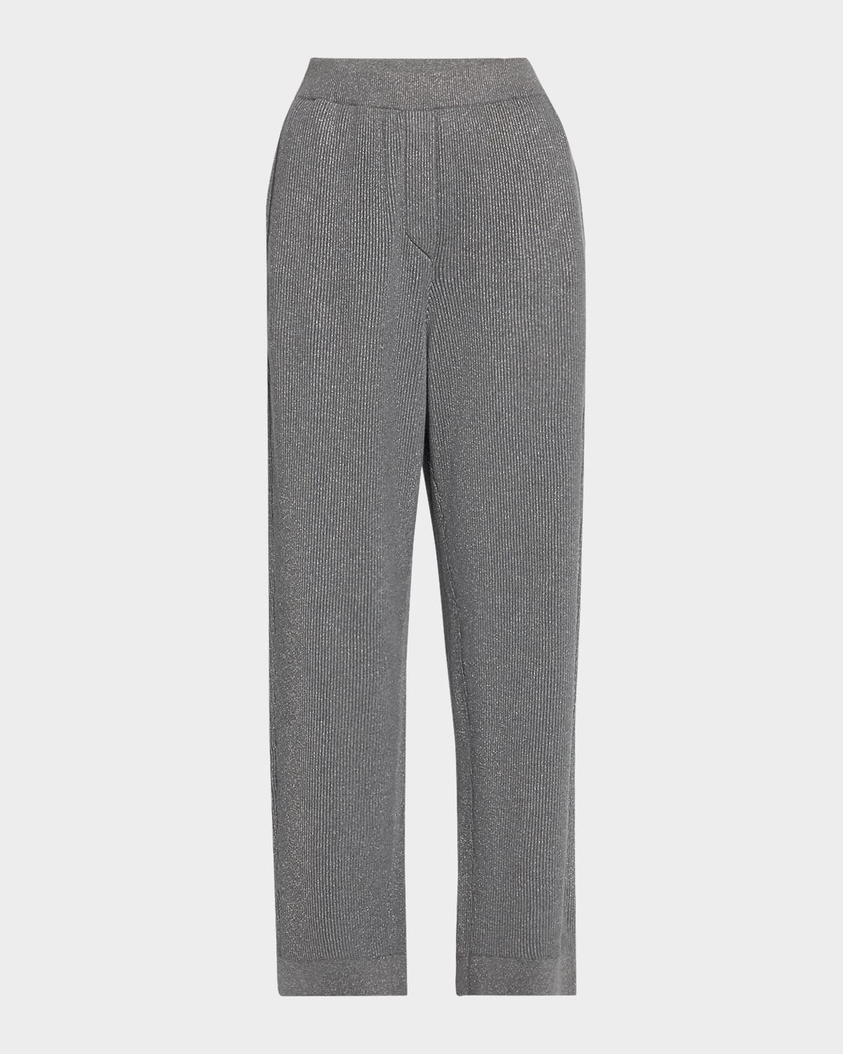 Cotton Lurex English Ribbed Straight-Leg Pants