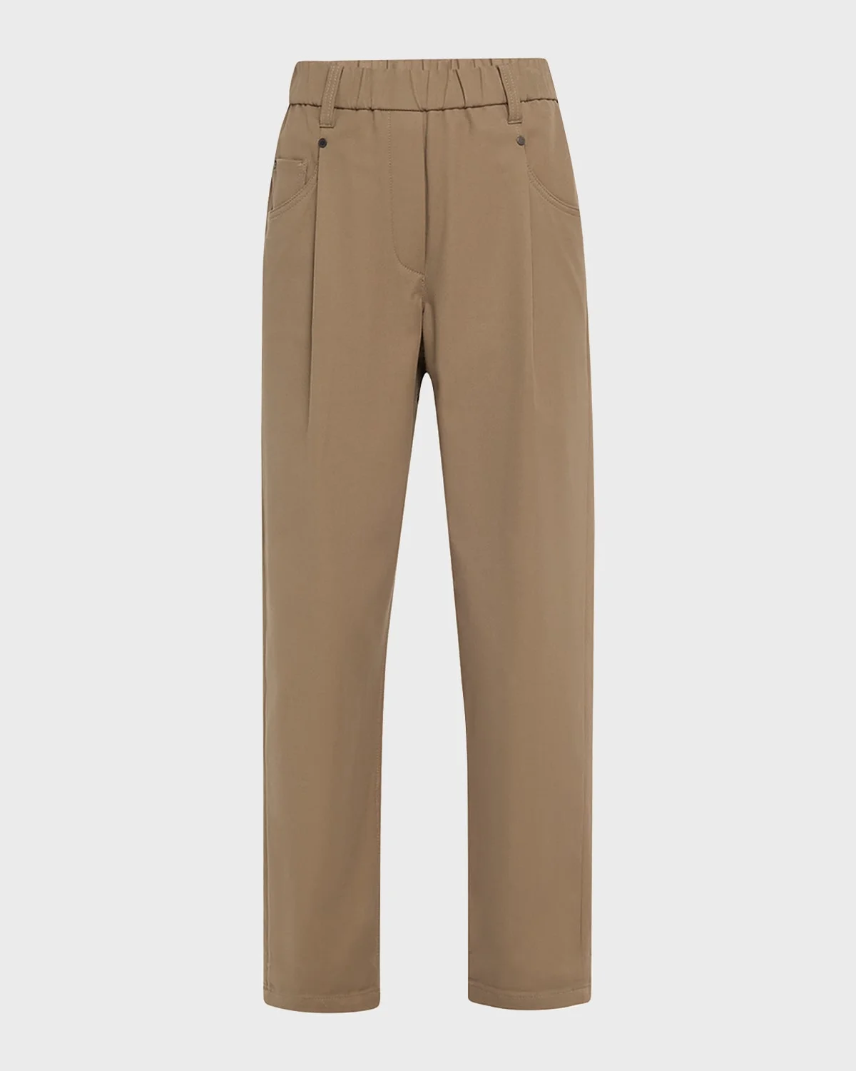 Cotton Twill Straight-Leg Ankle Pull-On Pants