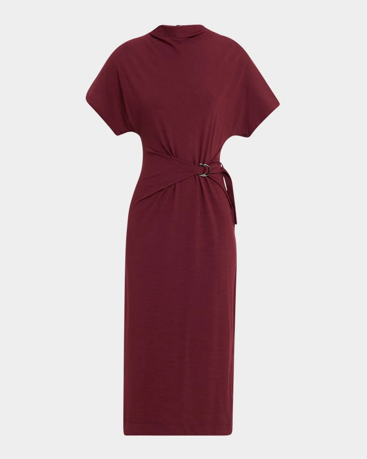 Drape Short-Sleeve Wool Jersey Midi Wrap Dress