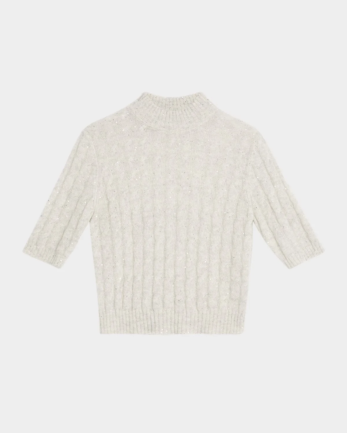 - Brunello Cucinelli cable-knit mohair-blend sweater with sequin embellishment - Mock neckline - Elbow-length sleeves - Classic fit - Hem sits at the hip - Pullover style - Mohair/nylon/polyamide/cotton - Made in Italy