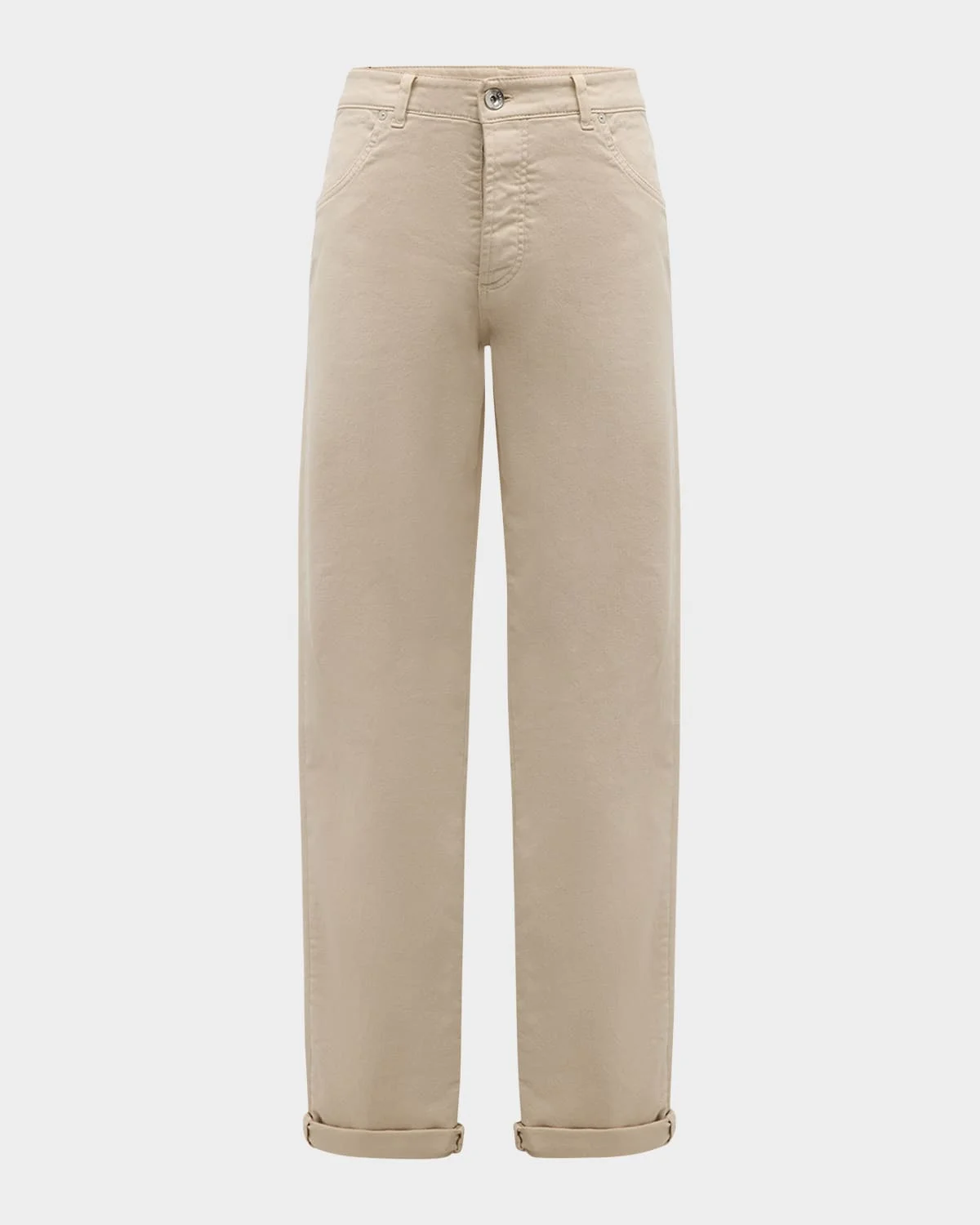 - Brunello Cucinelli pants in solid bull denim - Regular rise - Five-pocket style - Skinny fit - Full length - Button/zip fly; belt loops - Cotton/elastane - Lining: Cotton - Made in Italy
