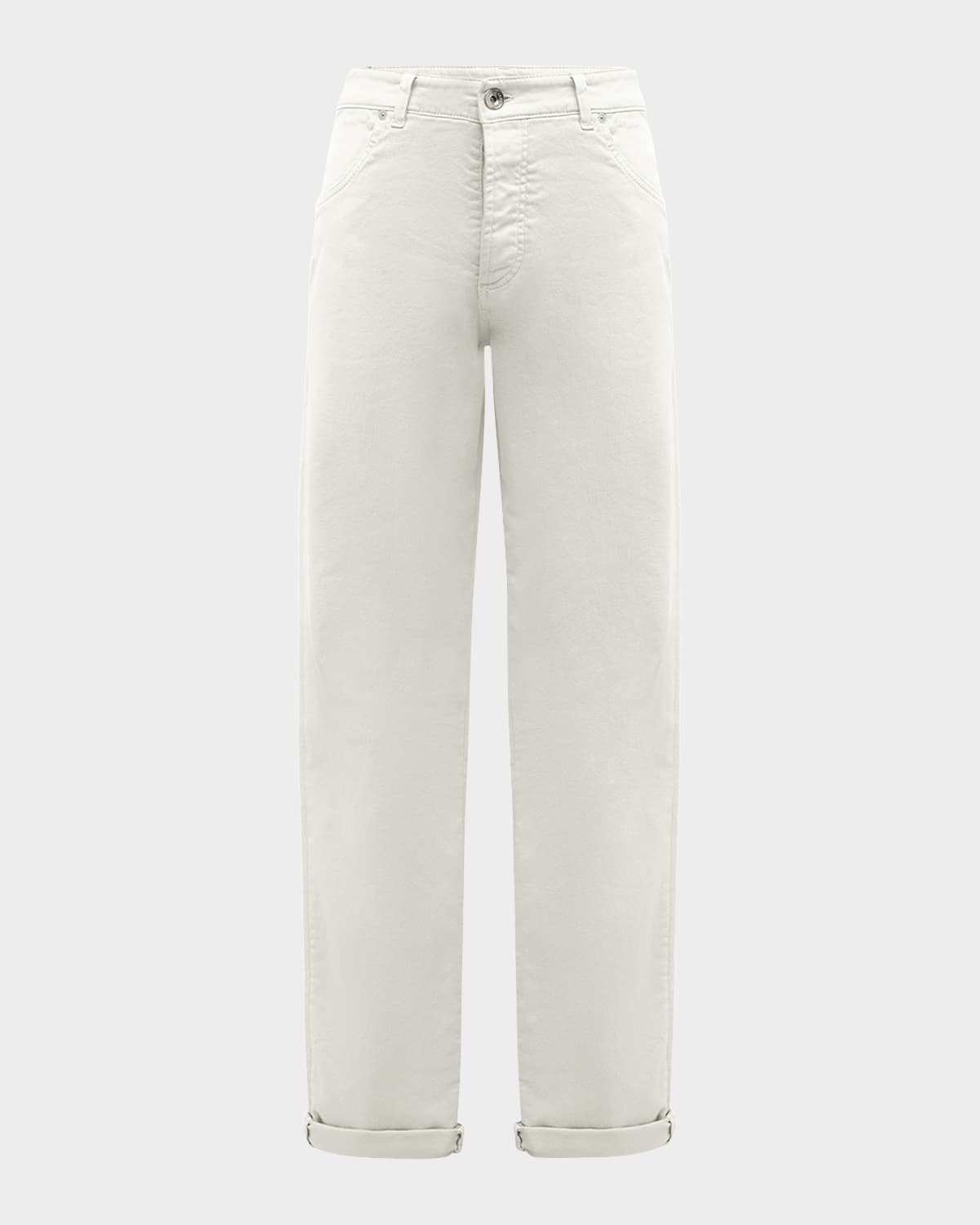 - Brunello Cucinelli pants in solid bull denim - Regular rise - Five-pocket style - Skinny fit - Full length - Button/zip fly; belt loops - Cotton/elastane - Lining: Cotton - Made in Italy