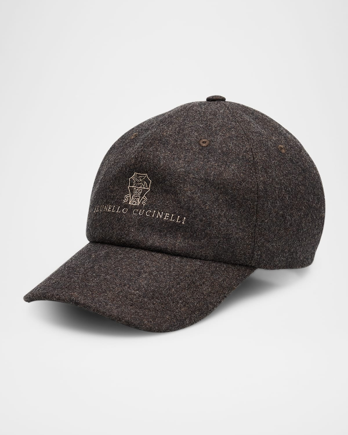 Brunello Cucinelli baseball cap in a wool and cotton blend defined by the distinctive logo embroidered on the front Top button Embroidered eyelets Sixpanel construction Curved brim Leather adjustable strap Cashmere Hand wash Made in Italy