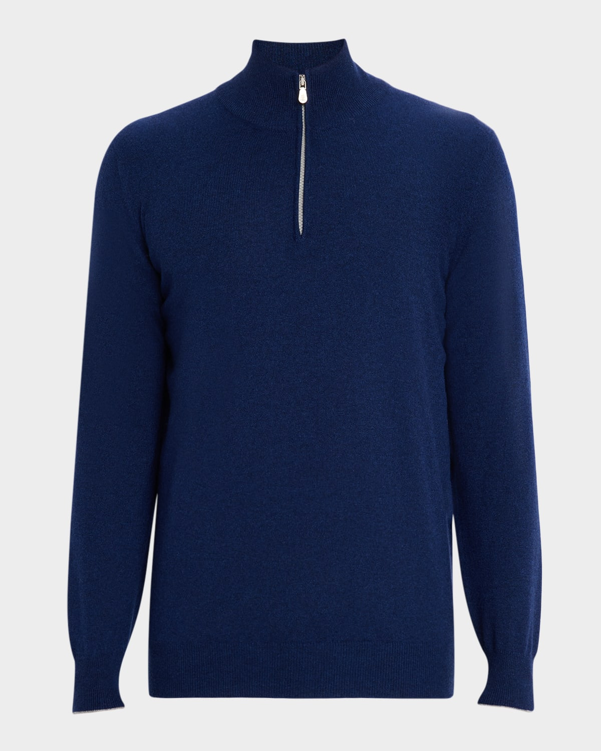 - Brunello Cucinelli pullover sweater in ultra-soft cashmere - Ribbed mock neck - Quarter-zip neckline - Long sleeves - Ribbed cuffs and hem - Pullover style - Cashmere - Made in Italy