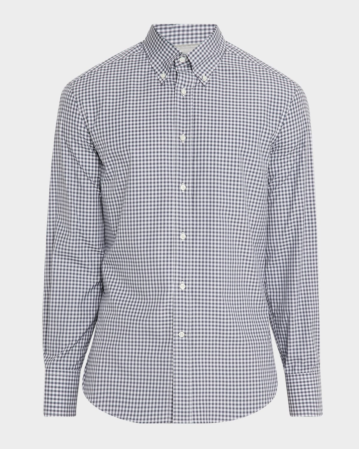 Men's Cotton Gingham Button-Collar Sport Shirt