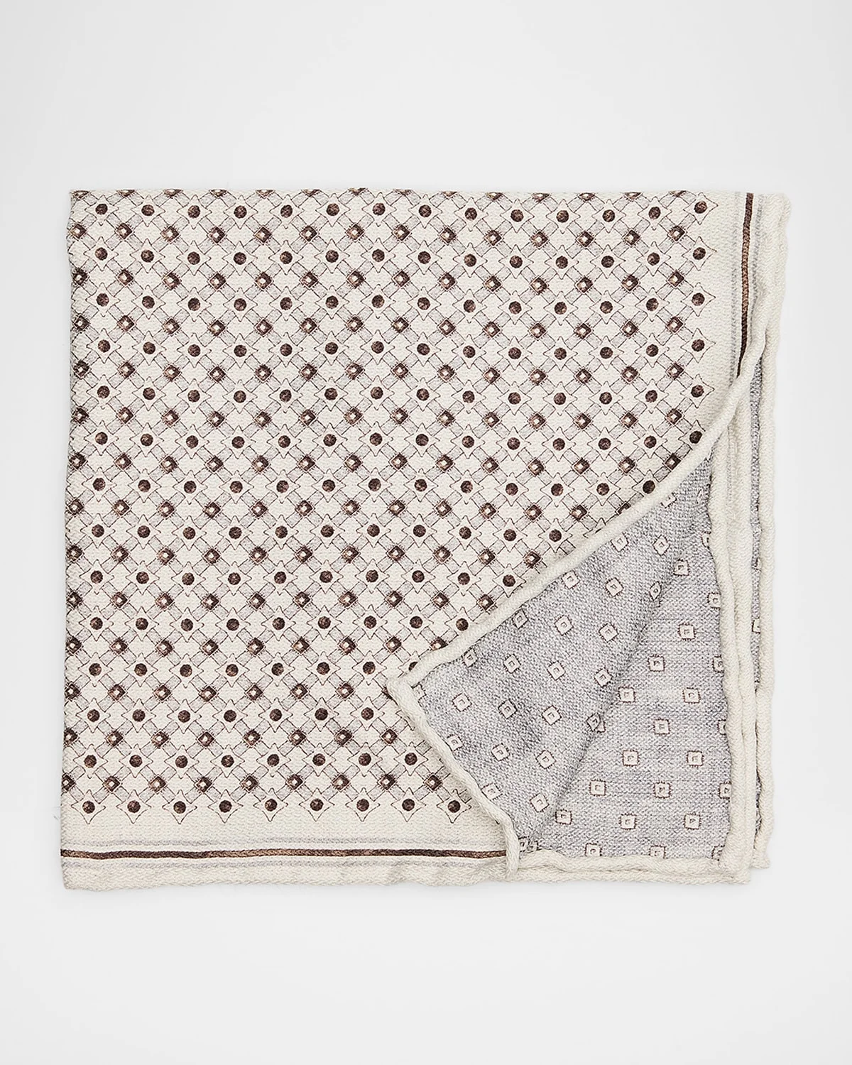 Refined geometric patterns and the season's colors enrich this pure silk pocket square from Brunello Cucinelli. Approx. 35"L x 35"W Doublefaced design Silk Dry clean Made in Italy