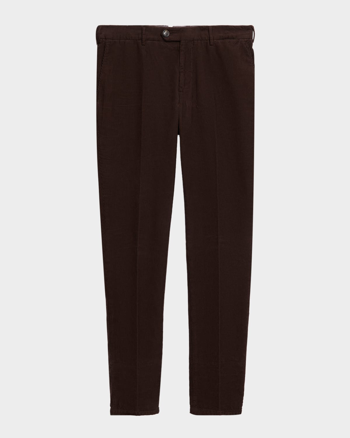 - Brunello Cucinelli pants in fine garment dyed cotton corduroy - Regular rise - Flat front - Side slip pockets - Buttoned back besom pockets - Classic fit through tapered legs - Full length - Extended button-zip front; belt loops - Cotton - Lining: Cotton/polyester - Dry clean, machine wash line dry - Made in Italy