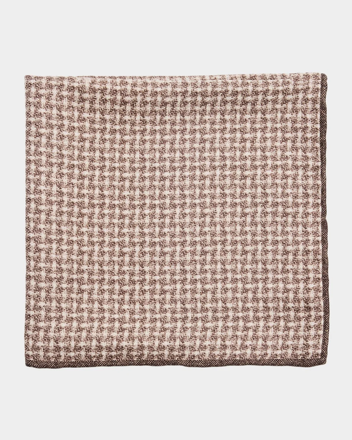 Brunello Cucinelli doublefaced pocket square showcasing a crossstitch houndstooth effect Solid tic weave reverse side Contrast trim May be styled multiple ways Silk Hand wash or dry clean Made in Italy